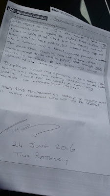 The next stage is for the lawyers (Eversheds) to respond with how they would like to proceed - pursue me for contempt of court and these costs or accept that this is an unjust use of our legal system and clear victimisation of peaceful protest, aimed at deterring further actions by communities in defence of the health and well-being of their children against this dangerous industry.